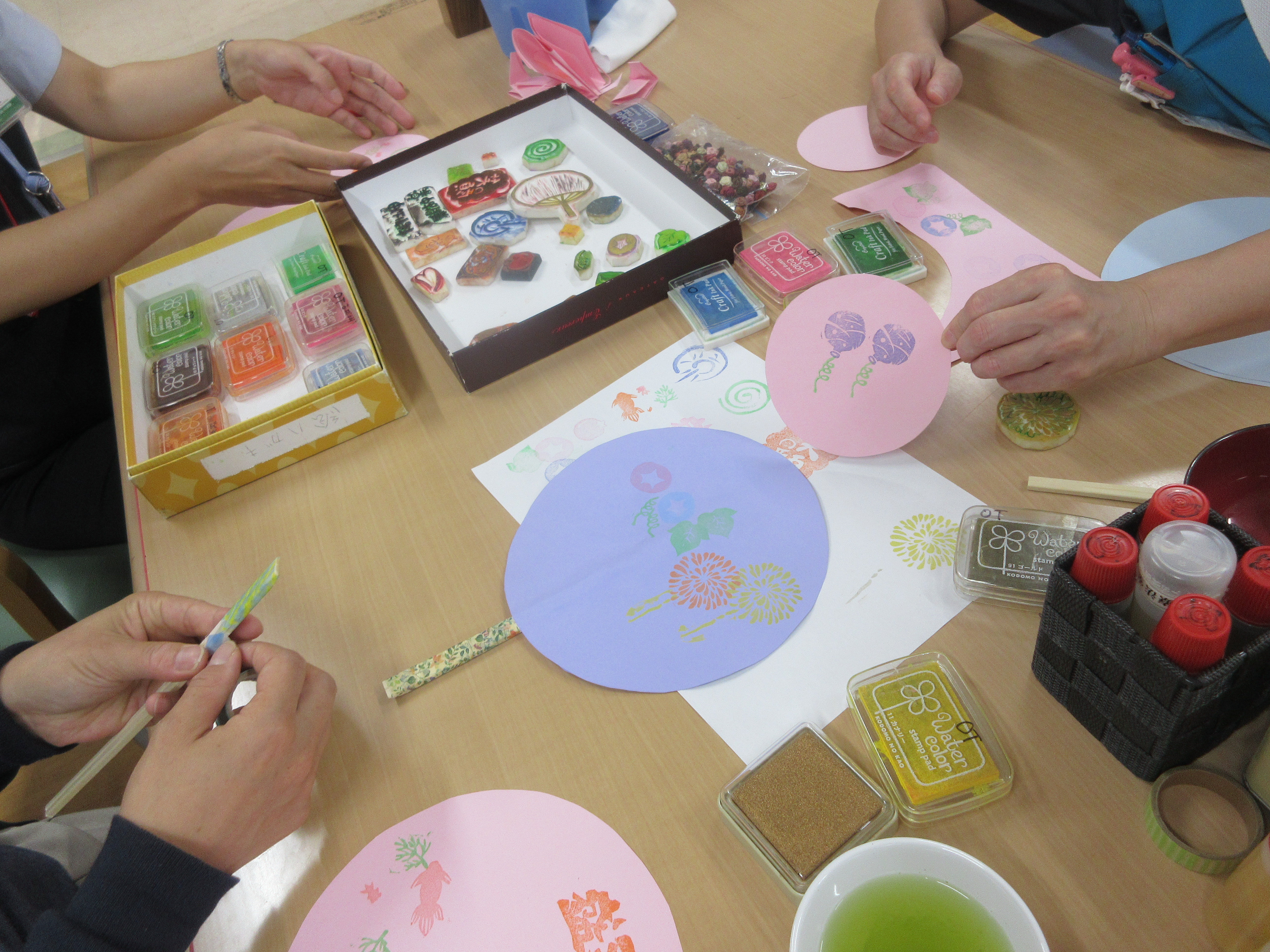 うちわ作りをしながら、ご家族同士の付き合い方、認知症について、