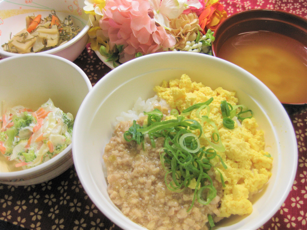 今回のお楽しみメニューは「二色丼」がメインでした!(^^)!