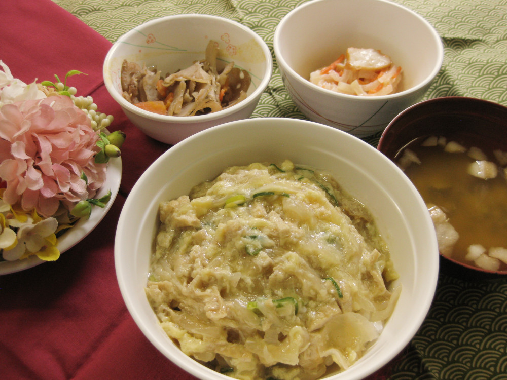 油揚げとネギを醤油と出汁で煮て、ふんわりと卵でとじた優しい味わいの丼になっています😊