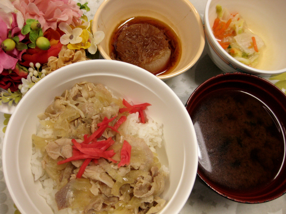 今回は豚丼と一緒に「ふろふき大根のなめ茸かけ」もご用意しました☺️