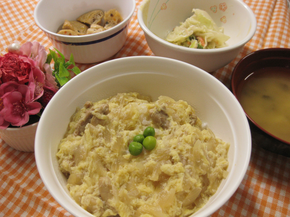 ごろっとした鶏肉とやわらかな玉ねぎを卵でとじた、食べごたえのある一品となっています😊