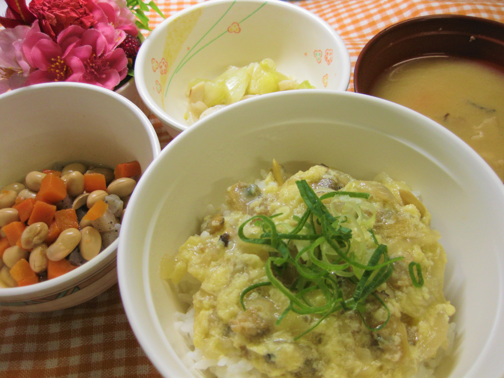 今回のお楽しみメニューは「あさりの卵とじ丼」がメインでした(*^▽^*)